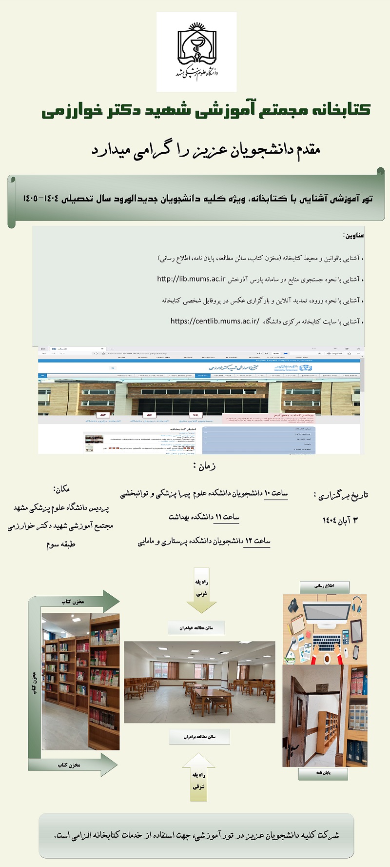 تور آموزشی آشنایی با کتابخانه، ویژه کلیه دانشجویان جدیدالورود سال تحصیلی 1404-1405