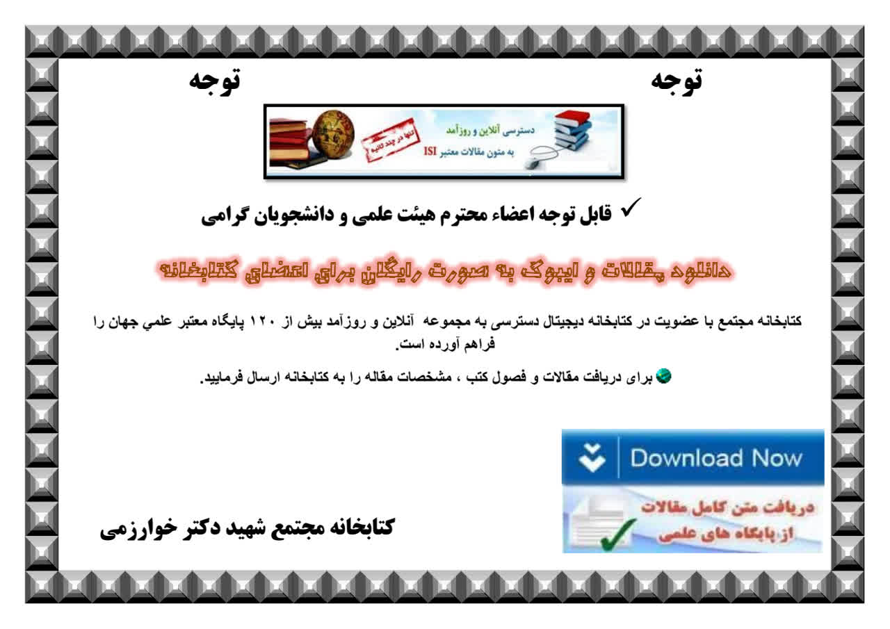 برای دریافت مقالات و فصول کتب ، مشخصات مقاله را به کتابخانه ارسال فرمایید.