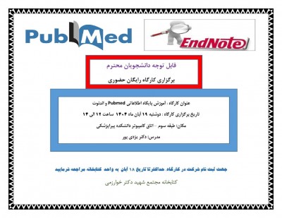 عنوان کارگاه : آموزش پایگاه اطلاعاتی Pubmed و اندنوت