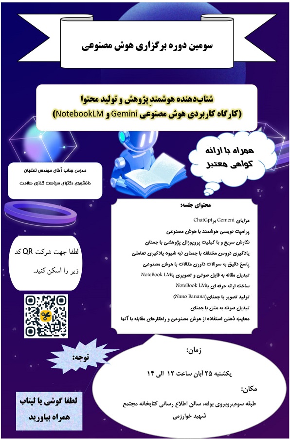 کارگاه عملی تجربه هوش مصنوعی: «شتابدهنده هوشمند پژوهش و تولید محتوا» کار با Gemini و NotebookLM برای:
